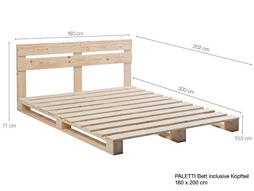 PALETTI Bett aus Paletten Fichte Natur